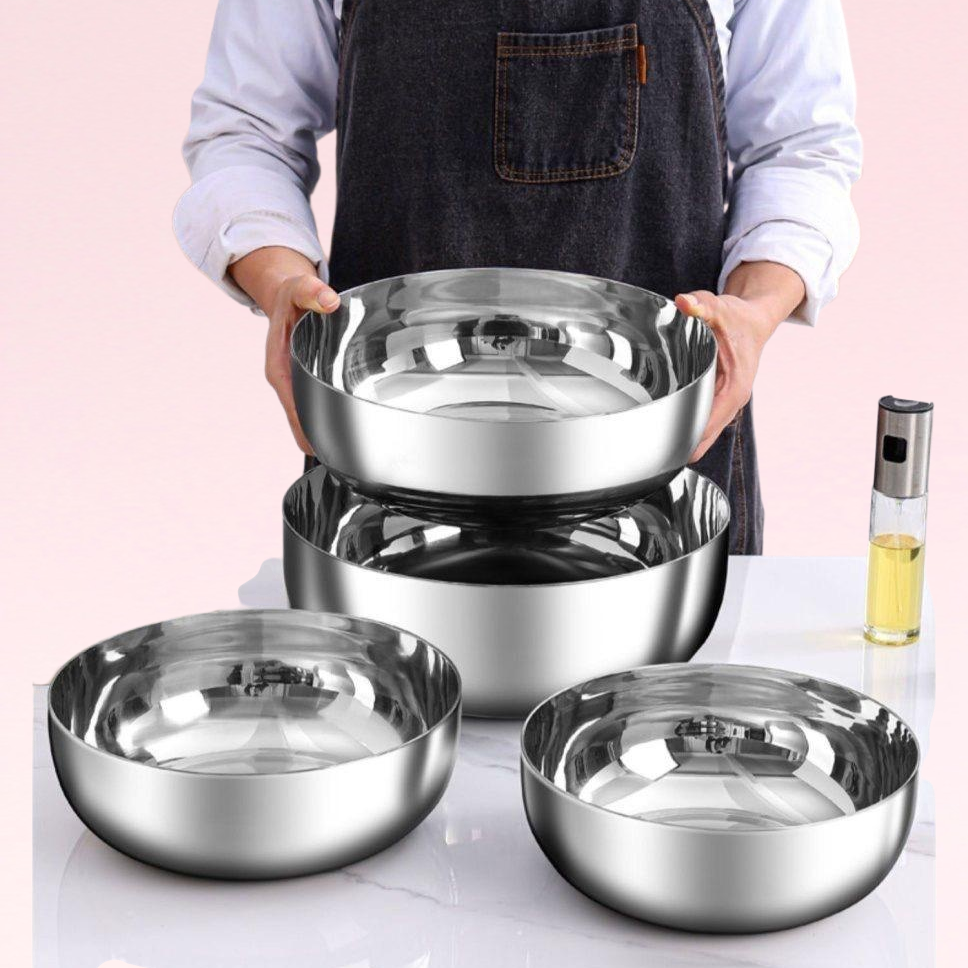 耐久性に優れたステンレス製家庭用品と洗面器は、錆びにくく衛生的でお手入れ簡単。キッチンや洗面所に最適です。