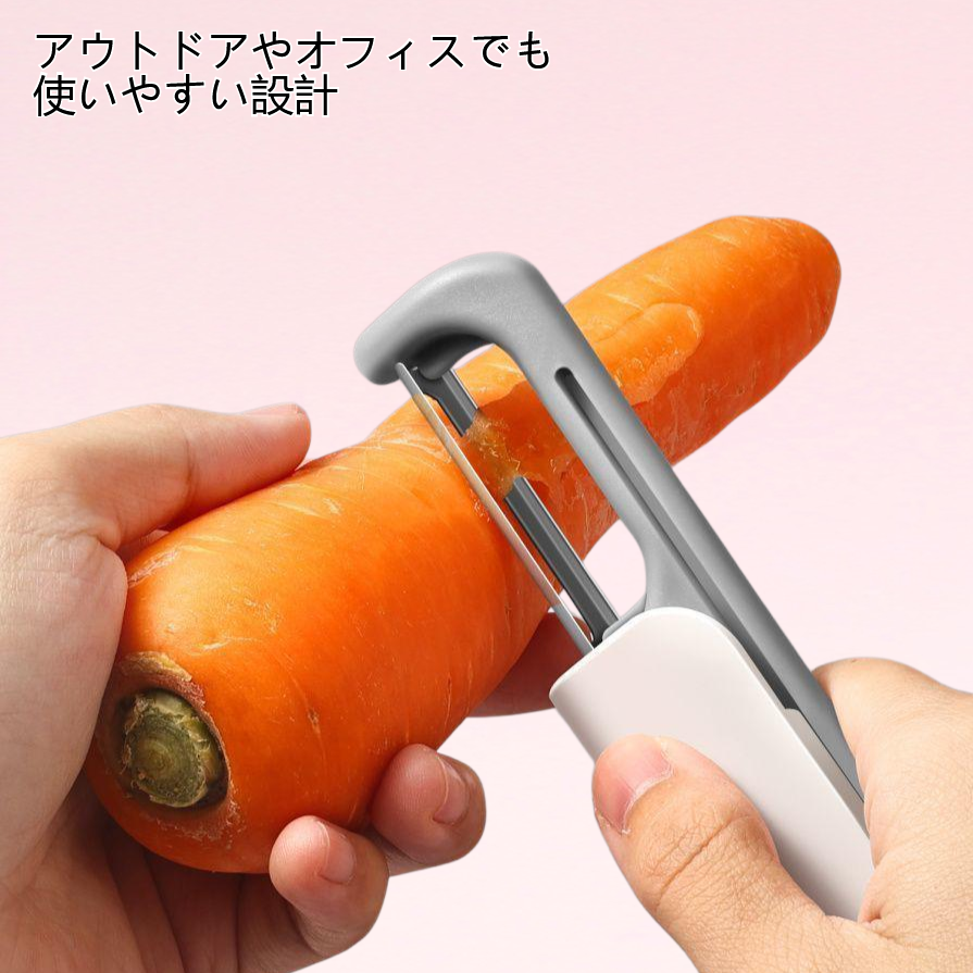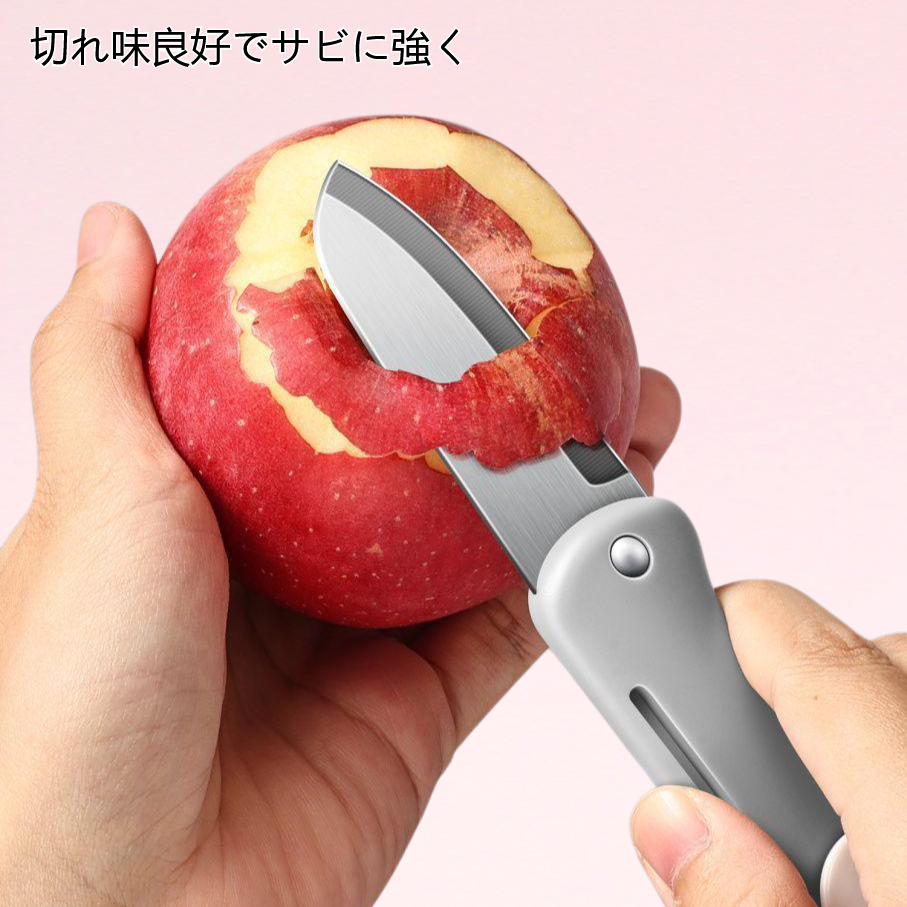 持ち運びに便利なポータブルステンレス製フルーツナイフ。切れ味良好でサビに強く、アウトドアやオフィスでも使いやすい設計。